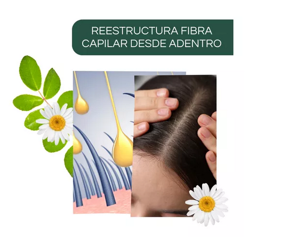 Tratamiento Anticaída del Cabello. Gracias a sus componentes naturales son absorbidos por el cabello y cuero cabelludo directamente, otorgando un cabello suave, saludable y resistente a los impacto del medio ambiente; minimizando las alteraciones como debilidad, cabello quebradizo y dañado por procedimientos químicos y enfermedades del cuero cabelludo.