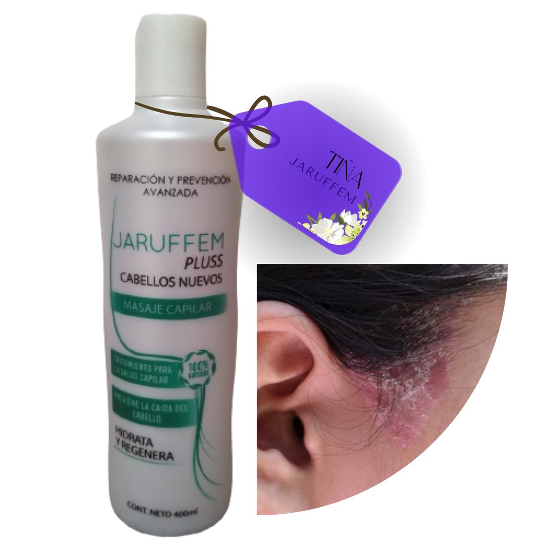 Tratamiento Tiña JARUFFEM PLUSS, gracias a su fórmula única y secreta de origen NATURAL, los aceites de PÁTULA DE CORDERO, extraídos directamente de los ancestros Indígenas de la Sierra Nevada de Santa Marta. Esta fórmula consigue que el folículo piloso se regenere y reestructure, haciendo que el cabello crezca abundante, sano y natural.